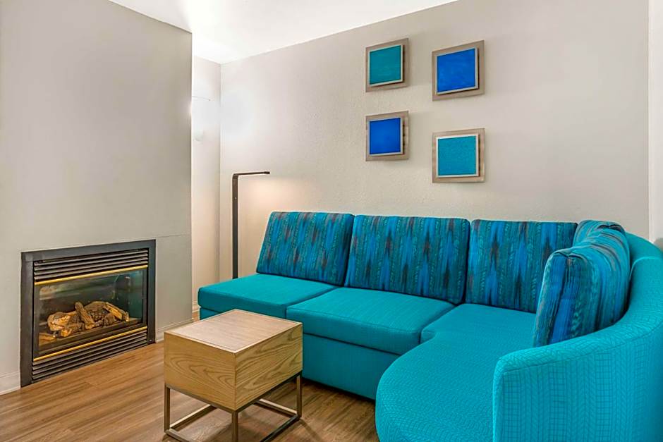 This room has a sitting area with a partial wall, separating the sleeping area. Amenities include a flat screen TV with cable channels, AC/Heat, a fireplace, individual cup coffee maker, mini refrigerator, microwave, ironing facilities and an private bathroom with hairdryer and a make-up mirror.